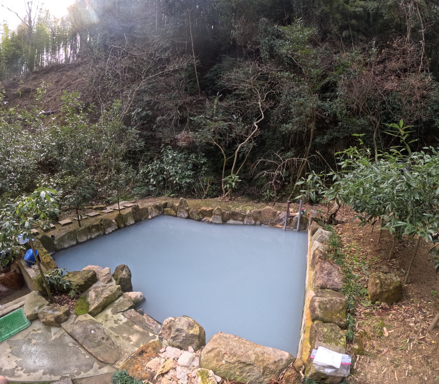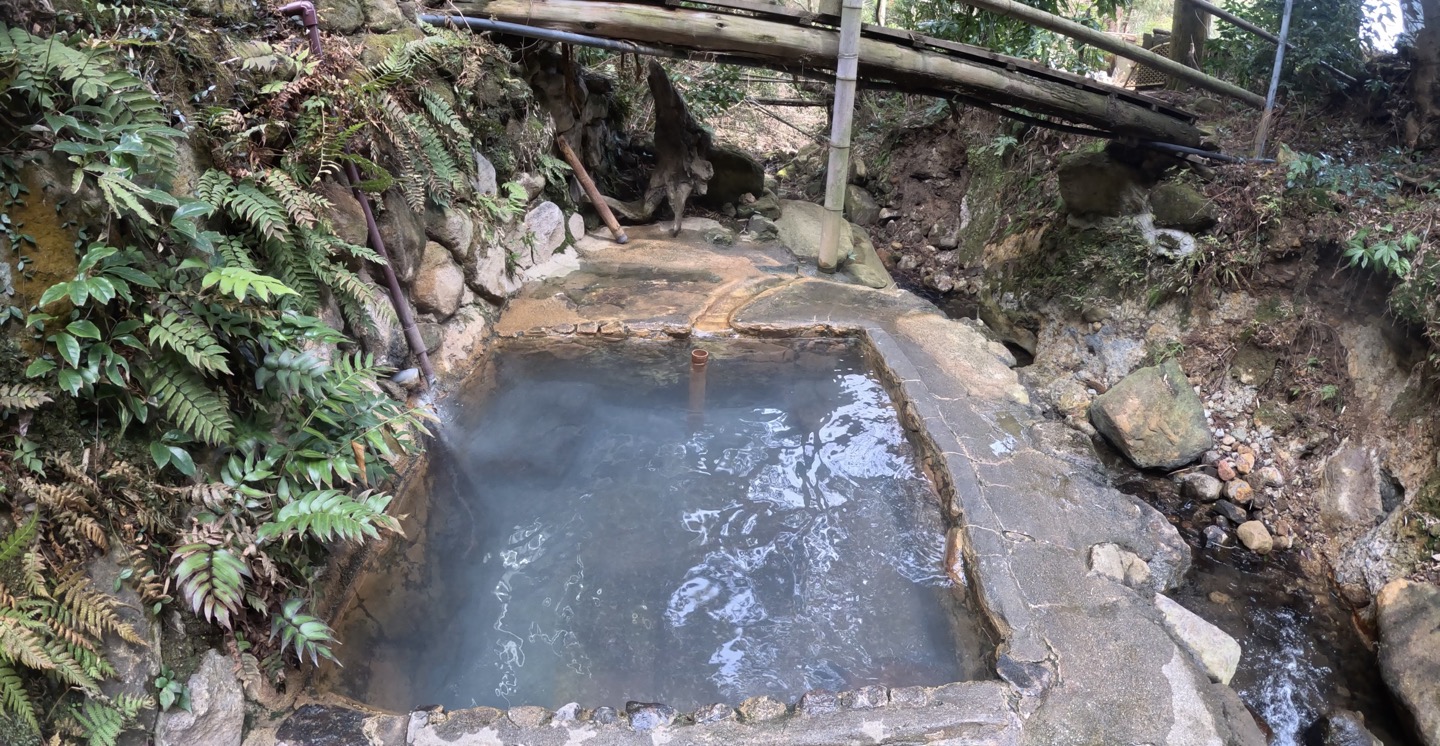 욕조는 땅에서 솟아난 온천을 돌로 막아 노천탕을 만든 옛날 옛적 수제감 넘치는 온천의 모습이었다.